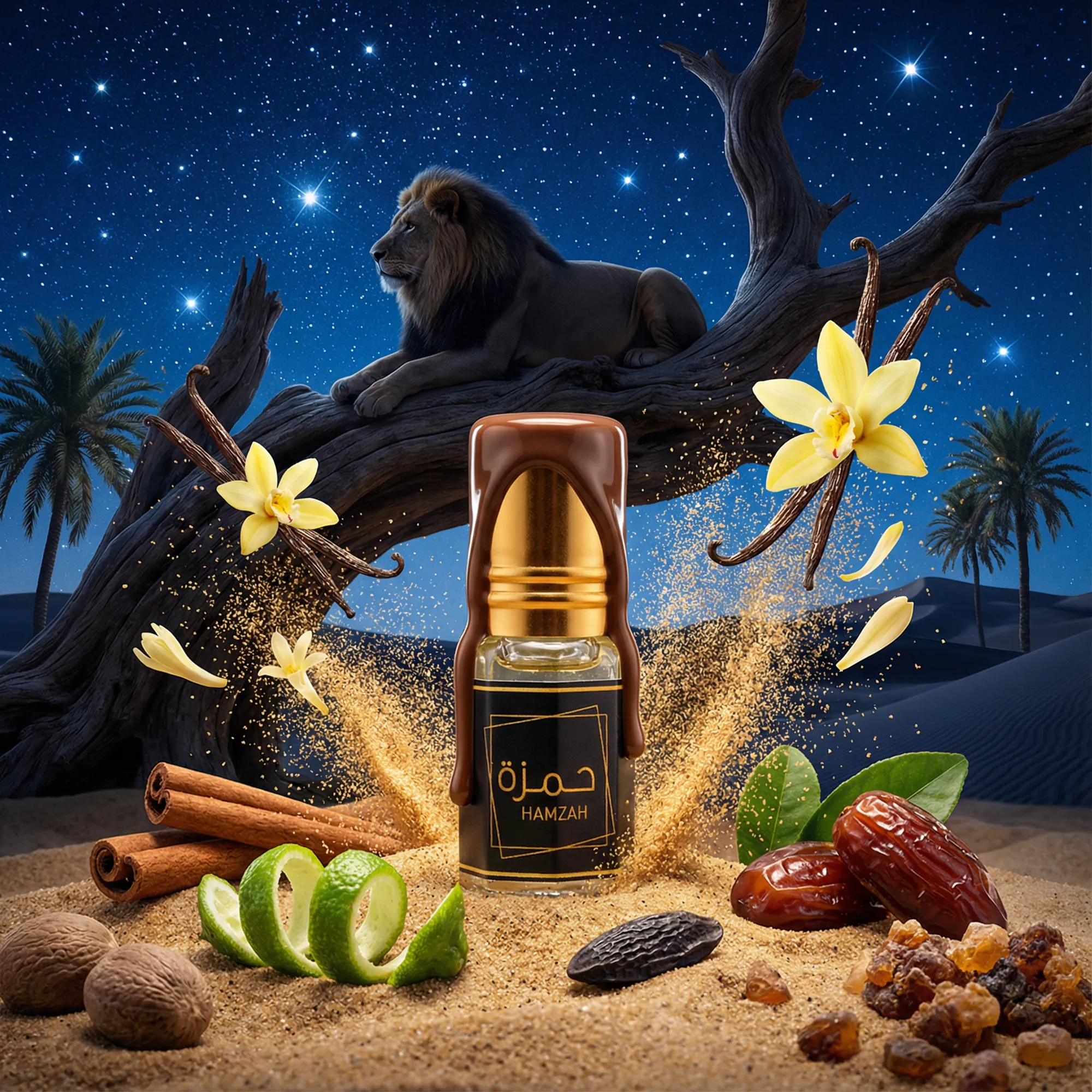 Un parfum dense et lumineux, où la chaleur des épices rencontre la douceur orientale, porté par un souffle noble et maîtrisé.
